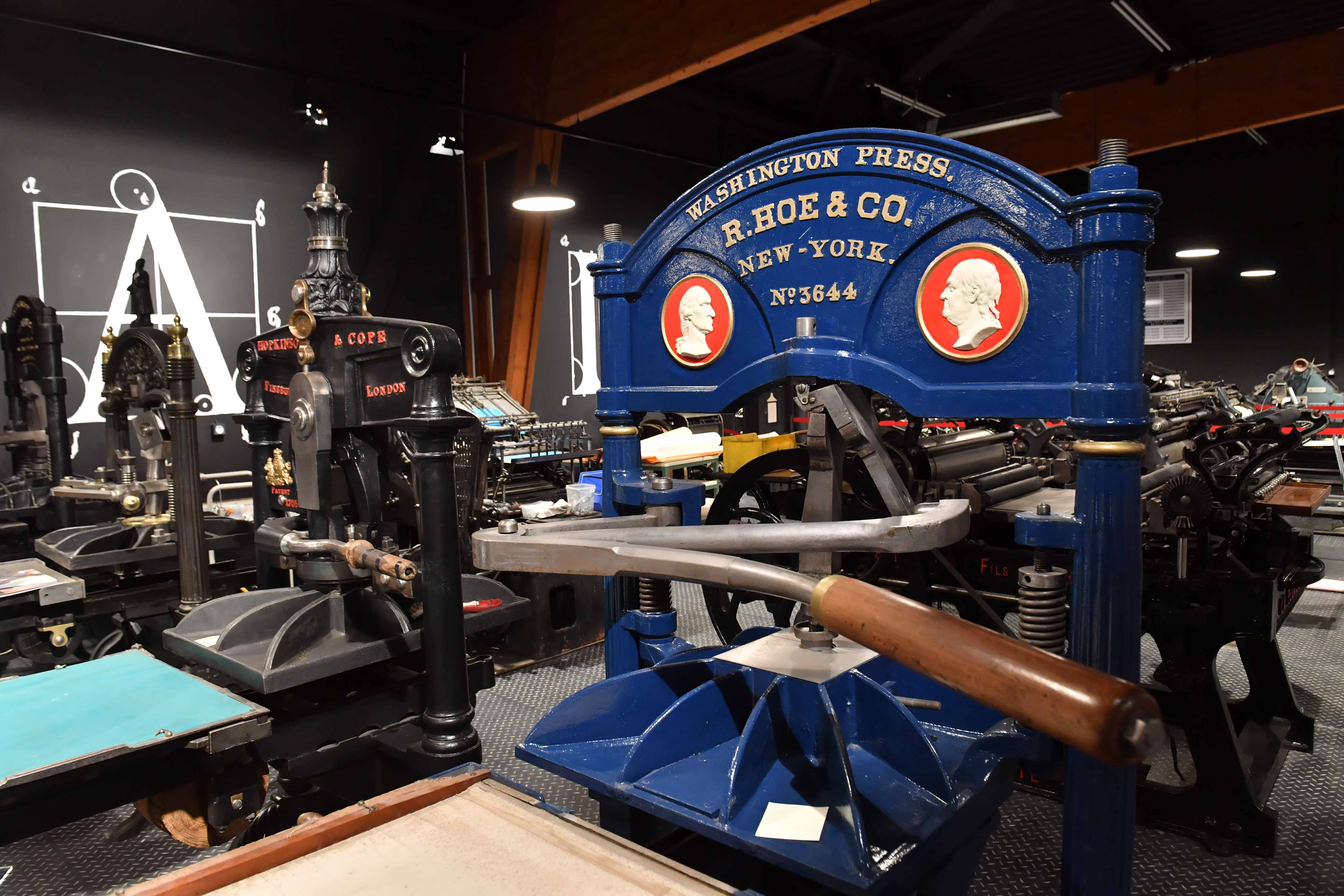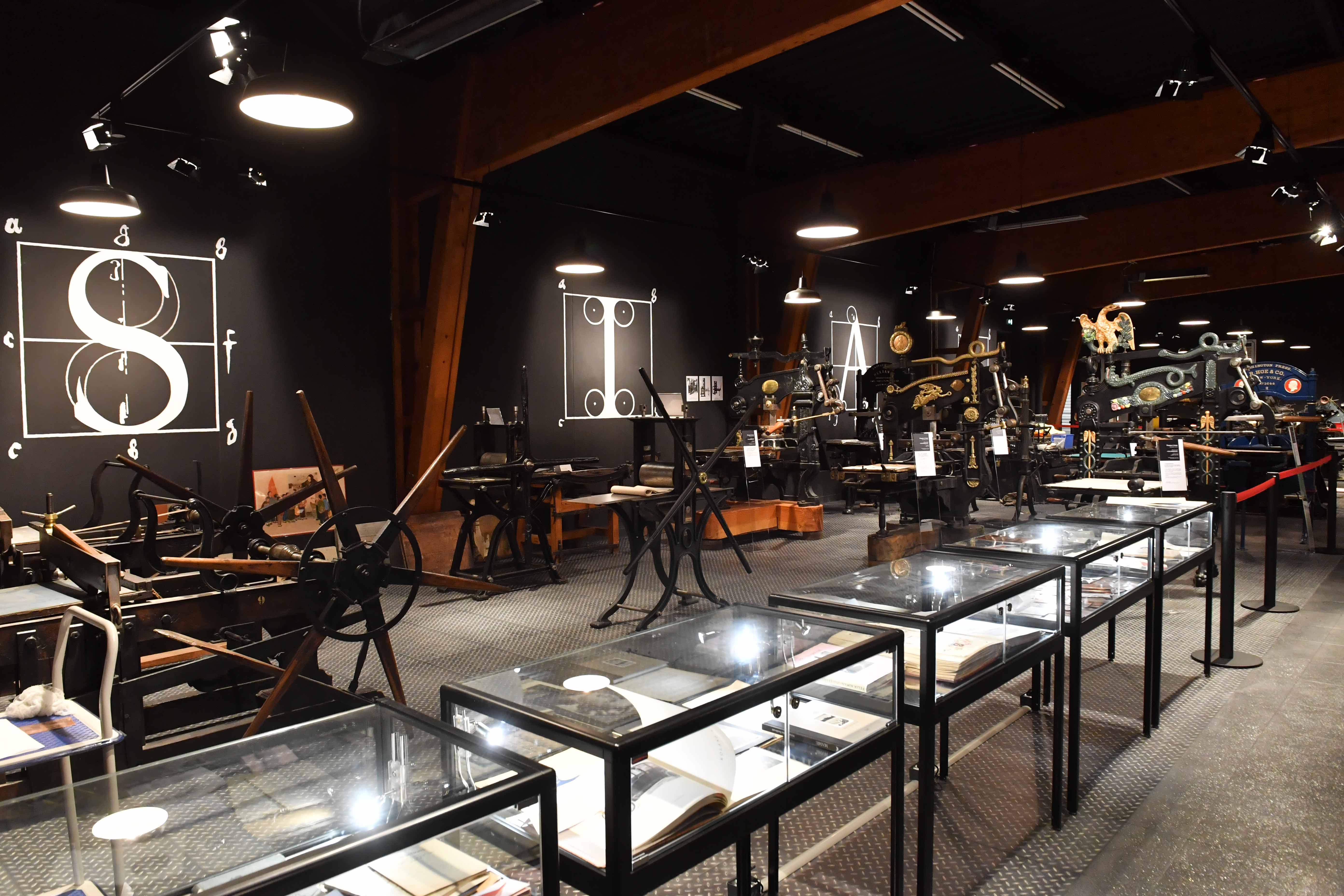 Chaque modèle présenté est une histoire. Cette salle d’exposition nous présente de nombreuses pièces uniques et rares, presses à bois « bêtes à corne », caractères de plomb et de bois, les pierres lithographiques, les plaques de cuivre, les machines dites à taille douce… etc.
